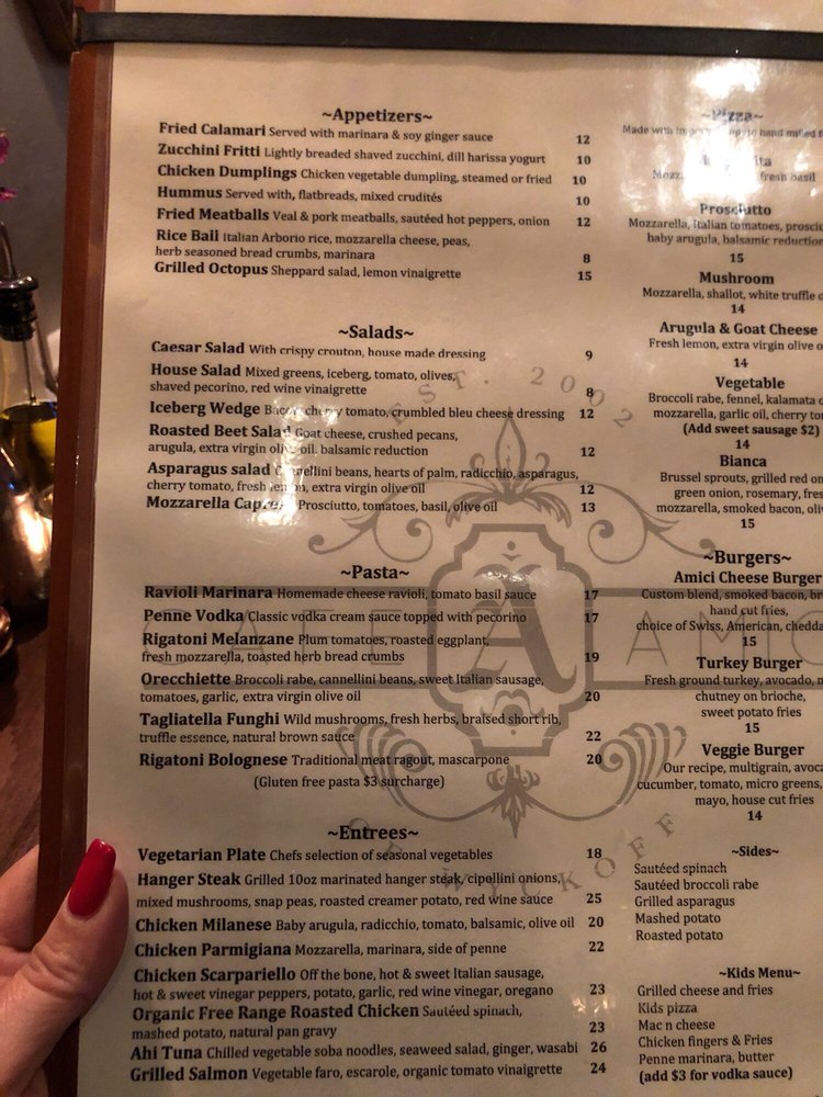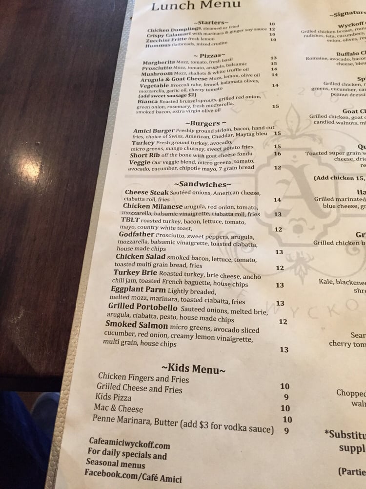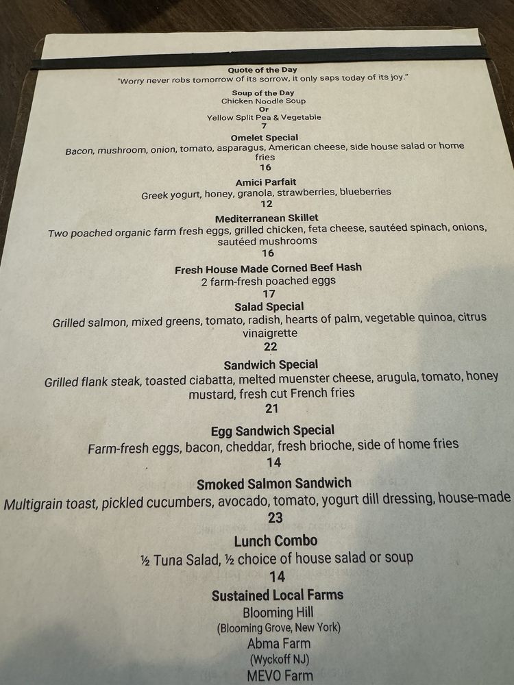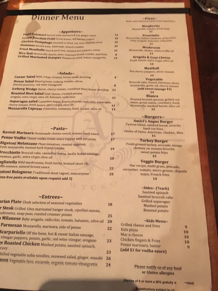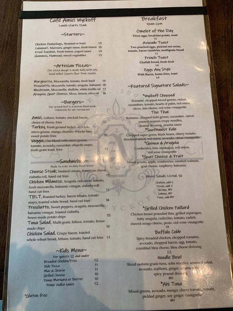 Cafe Amici is a delightful American-Italian restaurant located in Wyckoff, NJ. This cozy spot offers a wide range of amenities, including outdoor seating, catering services, and Wi-Fi. The menu features delicious breakfast options like Omelet Specials and Avocado Toast, as well as lunch starters such as Chicken Dumplings and Hummus Flatbread. The artisan pizzas are a must-try, with options like Margarita and Mushroom Pizza. Customers rave about the exceptional service and consistent, fresh food offerings. Whether you're hosting a special event or just stopping by for a casual lunch, Cafe Amici is sure to impress with its diverse menu and friendly atmosphere.