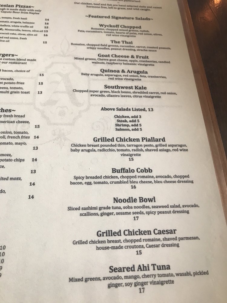 Chicken breast pounded thin, tarragon pesto, grilled asparagus, baby arugula, radicchio, tomato, radish, shaved asiago, red wine vinaigrette.